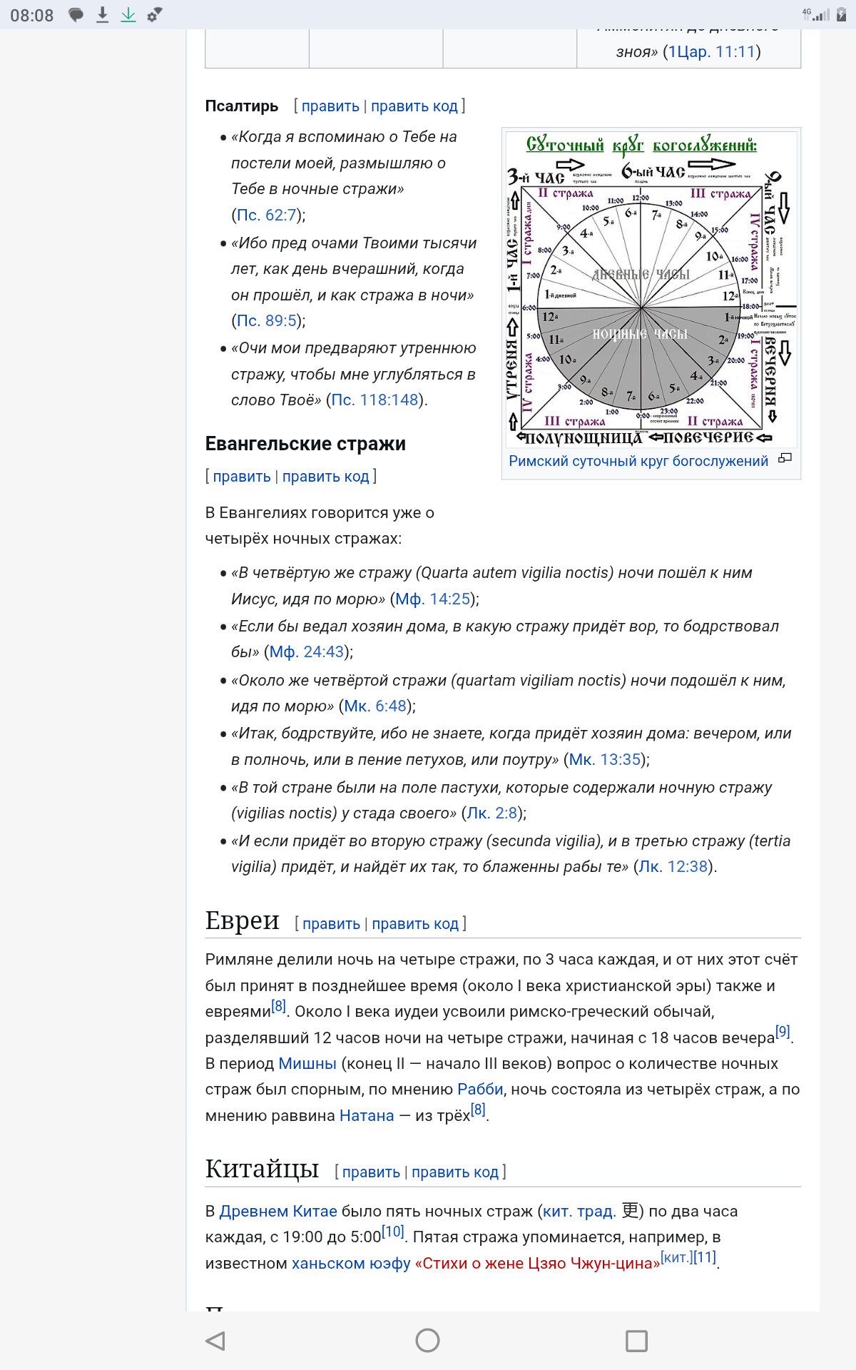 Так часы гораздо удобнее использовать для счёта и режима в войсках, это не какие то примерные и мистические стражи. Со стражами лучше копать к вавилоняним и египтянам. А в русскоязычной википедии бывает и экслюзивный бред. Была статься "аберрационное время" на русском и узбекском, параллаксом мерили расстояния до далёких звёзд и в Чечене пахали хлеб, хлебопашцы. Вобщем поосторожнее с информацией.