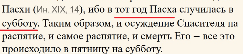 Иоанна 19.14 о пасхальном приготовлении, Иоанна 19.31 о субботнем.