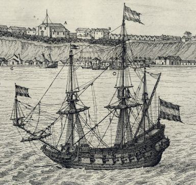 (На задней части корабля, по-видимому, белеет фигура единорога.)