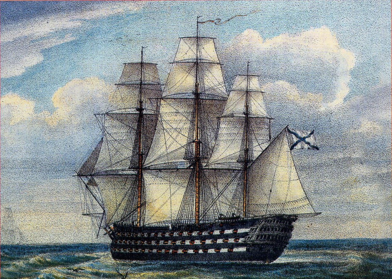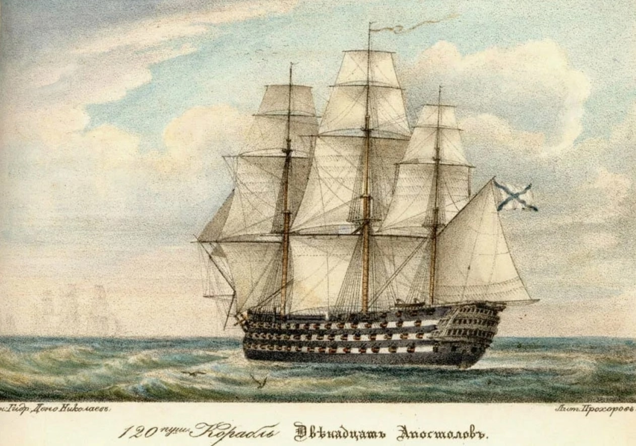 Корабль «Двенадцать апостолов» на литографии В. А. Прохорова.