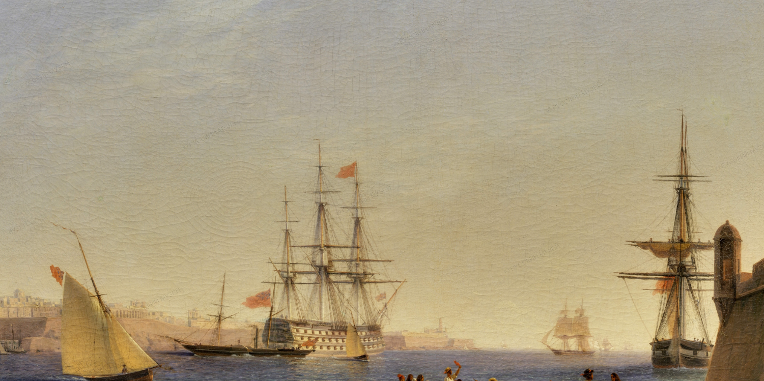 Эта картина -- хороший претендент на внимательное исследование, которое может выявить как выглядели на ней флаги на самом деле, до того, как их "откорректировали". С другой стороны, хотя и видно, что это корабль русского флота, такого же типа, что изображены художником в Севастополе, но находился он на Мальте, и кто-то может утверждать, что это корабль какой-то другой страны.