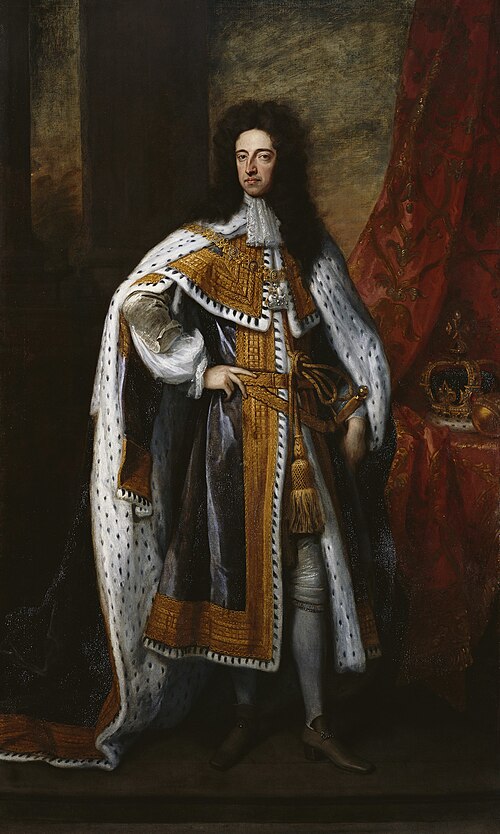 "Вильгельм III и II (Уильям Генрих; голландский: Виллем Хендрик; 4 ноября 1650 – 8 марта 1702), также известный как Вильгельм Оранский, был суверенным принцем Оранским с рождения, штатгальтером Голландии, Зеландии, Утрехта, Гелдерна и Оверейссела в Голландской республике с 1672 года, а также королём Англии, Ирландии и Шотландии с 1689 года и до своей смерти в 1702 году. Он правил Англией, Шотландией и Ирландией вместе с женой, королевой Марией II, и их совместное правление известно как правление Вильгельма и Марии."