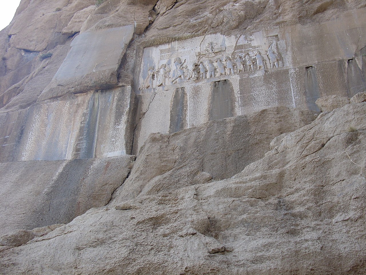 «Говорит царь Дарий I: некто именем Камбис, сын Кира, из нашего рода, был здесь царём. Этот Камбис имел брата, по имени Бардия, от одного отца и одной матери. Камбис убил этого Бардию. Когда Камбис умертвил Бардию, народу было неизвестно, что Бардия убит. Затем Камбис пошёл в Египет. Когда Камбис пошёл в Египет, народ возмутился, ложь распространилась в стране, как в Персии, так и в Мидии, ровно как и в прочих странах. Был человек, маг, по имени Гаумата, возмутившийся в Пишиявада, у горы Аракадриш; оттуда он начал бунт. В месяце виякне, 14 числа (11 марта 522 года до н. э.) он возмутился. Народу он лгал, говоря: „Я — Бардия, сын Кира, брат Камбиса“. Тогда весь народ отпал от Камбиса к нему, и Персия, и Мидия, и прочие страны. Он захватил власть; это было 9 гармапада (2 апреля). Тогда Камбис умер, умертвив себя… Эта власть, которую маг Гаумата исторг у Камбиса, издревле принадлежала нашему роду. Затем Гаумата отнял у Камбиса и Персию, и Мидию, и прочие страны; он присвоил их себе и стал царём. Не было ни одного человека, ни перса, ни мидянина, ни из нашего рода, который бы отнял власть у этого мага Гауматы. Люди весьма боялись его: он мог казнить многих людей, которые некогда знали Бардию, чтобы они не узнали, что он не Бардия, сын Кира. Никто не осмеливался что-либо сказать о Гаумате-маге, пока я не прибыл. Тогда я помолился Ахурамазде о помощи. Ахурамазда послал мне помощь. В месяце багаядише, 10 числа (29 сентября 522 года до н. э.), я с немногими людьми, погубил этого Гаумату и его знатнейших приверженцев. Есть крепость Сикаяуватиш, в области, именуемой Нисая, в Мидии, — там погубил я его и исторг у него власть. Волей Ахурамазды я стал царём; Ахурамазда вручил мне царство. Власть, отнятую у нашего рода, я вернул и поставил её на надлежащее место, как было раньше. Храмы, разрушенные магом, я возобновил, народу выгоды, стада и жилища — дома, отнятые Гауматой, я возвратил, Я вернул народу его прежнее положение, как в Персии, так и в Мидии, так и в прочих странах. Я вернул, что было отнято. Волею Ахурамазды я всё это совершил. Я трудился, чтобы вернуть нашему дому его прежнее положение, как было издревле, я старался (проложить) по воле Ахурамазды, как если бы Гаумата не устранял нашего дома».