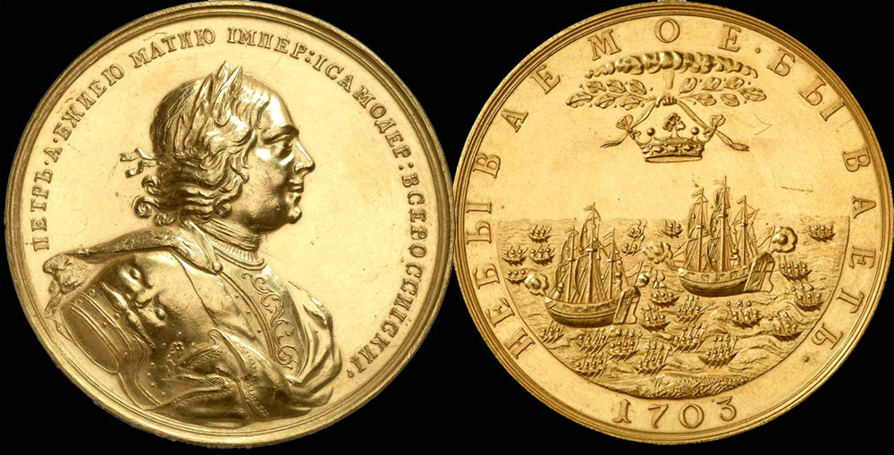 "Государь ликовал! Он приказал выбить медаль с гордой надписью: Небываемое бывает, которой наградили всех участников. Пётр гордился своим личным участием в баталии и вместе с Александром Меншиковым стал кавалером ордена Андрея Первозванного."