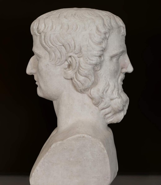 "Янус — древнее италийское божество, бог входов и выходов, начала и конца. Все двери, ворота, переходы посвящались Янусу. Янус также покровитель дорог и путешественников. В Риме было несколько храмов, посвященных Янусу. Самый известный из них состоял из двух арок. Во время мира ворота храма были закрыты, во время войны распахивались, и войска, отправляясь в поход, проходили через эти ворота. Именно эта сторона мифа использовалась составителями аллегорических картин петровского времени. На картине триумфальных ворот 1721 года был изображен храм «двоеличного Януса» и император Август, повелевающий затворить его врата. Образ Двуликого Януса использовался в транспаранте фейерверка 1 января 1703 года. Январь — первый месяц года — был посвящен Янусу. Двуликий Янус держал ключ и замок, намекая зрителям о взятии крепости Нотебург, переименованной Петром I в Шлиссельбург, то есть Ключ-город. Безусловно, присутствие в любимом саду Петра I этой аллегории представляется оправданным. Янус изображен неизвестным скульптором именно так, как диктуют каноны — с двумя лицами: молодым, обращенным в будущее, и старым, смотрящим в прошлое. // Скульптура Летнего сада. Сост. Н. Д. Кареева. СПб, 2004. С. 96."
