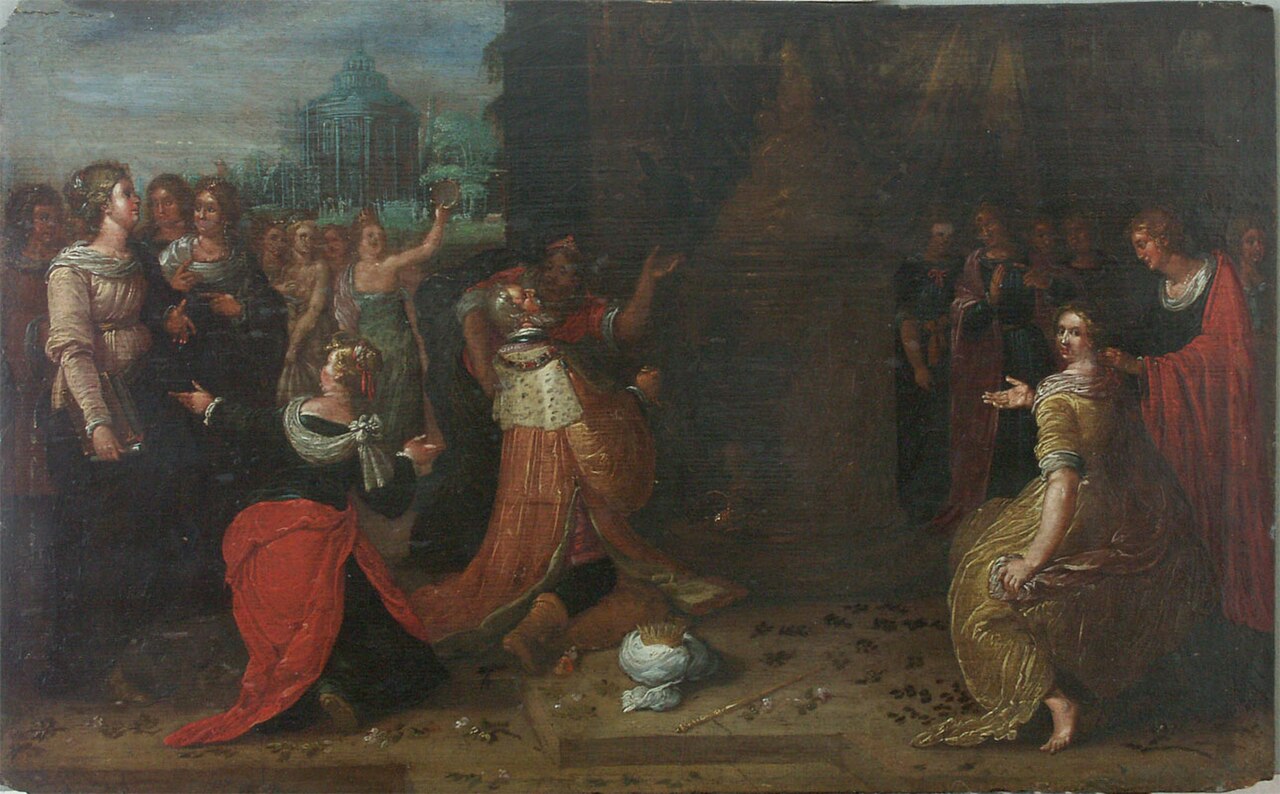Неизвестный художник. «Идолослужение Соломона», XVII в. Дерево, масло, 31,8х50,5. Омский областной музей изобразительных искусств имени М. А. Врубеля.