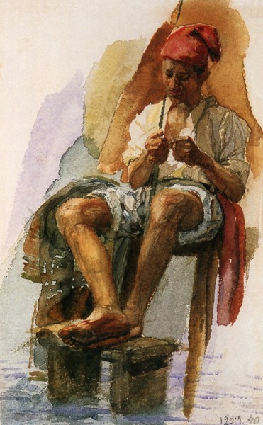 Также и первая акварель: отражение корабля в воде образует флаг вместе с самим кораблем. И внизу более темный цвет, то есть синий.