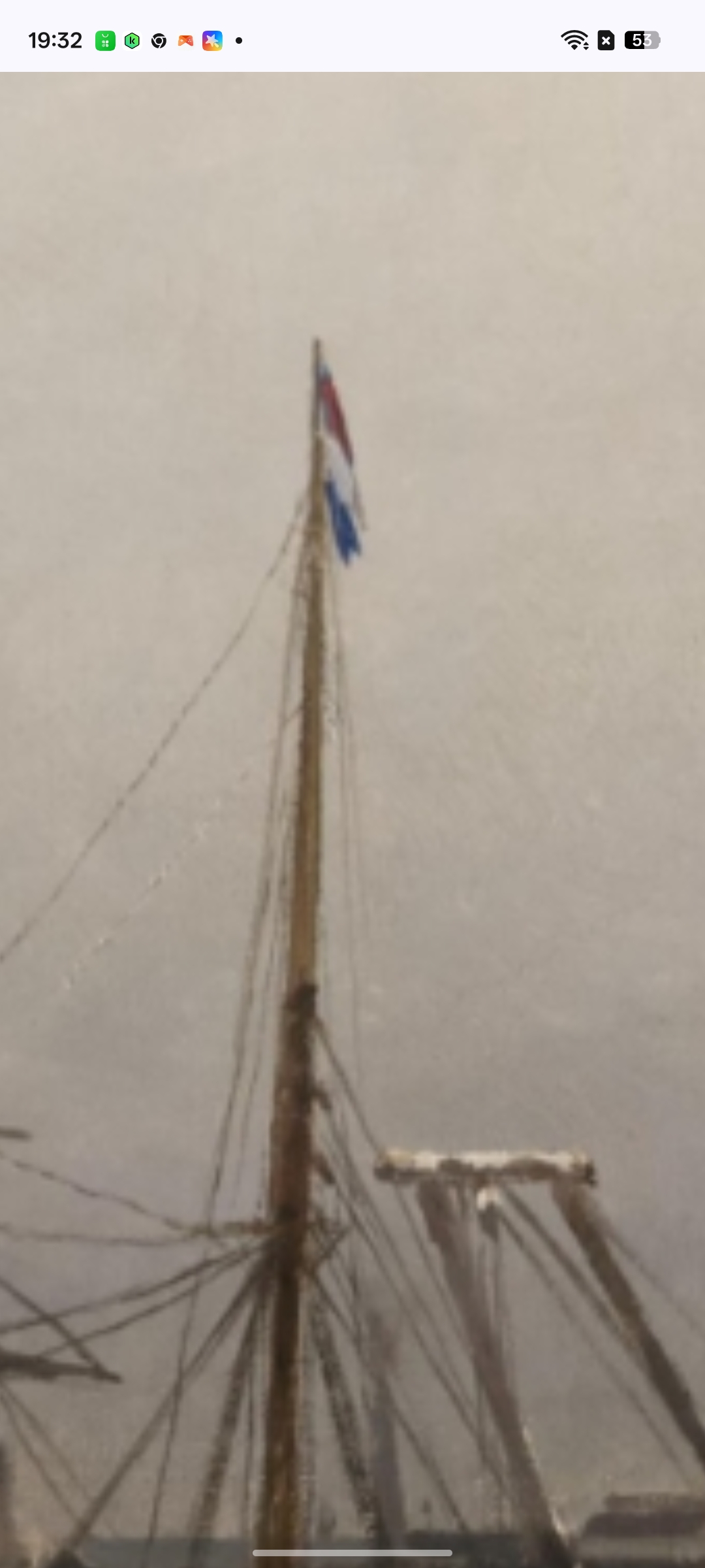 Флаг на мачте по-видимому откорректирован. Ещё один флаг висит в небе. Возможно, тоже откорректирован. Скорее всего. Было бы странно, если бы Александр Третий нарисовал испанский флаг. Может быть это и не флаг, но очень похоже на флаг.