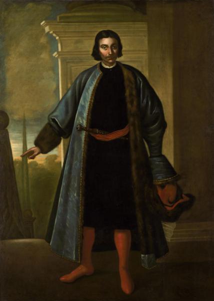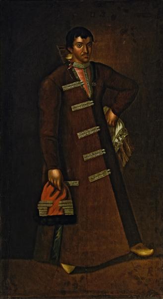 Персонаж на портрете одет в полном соответствии с указом 1681. Длиннополое одеяние на меху — так называемая польская шуба. Под шубой черный зипун, застегнутый наискось на левом боку в соответствии с заимствованной из Турции модой. Такой покрой нижнего платья был очень характерен для русского костюма 1681–1700 годов. Типичен для этого времени и изображенный в правой руке князя головной убор — «польская шапка-кораблик с красным верхом и фигурным меховым околышем» (Летин. С. 59).