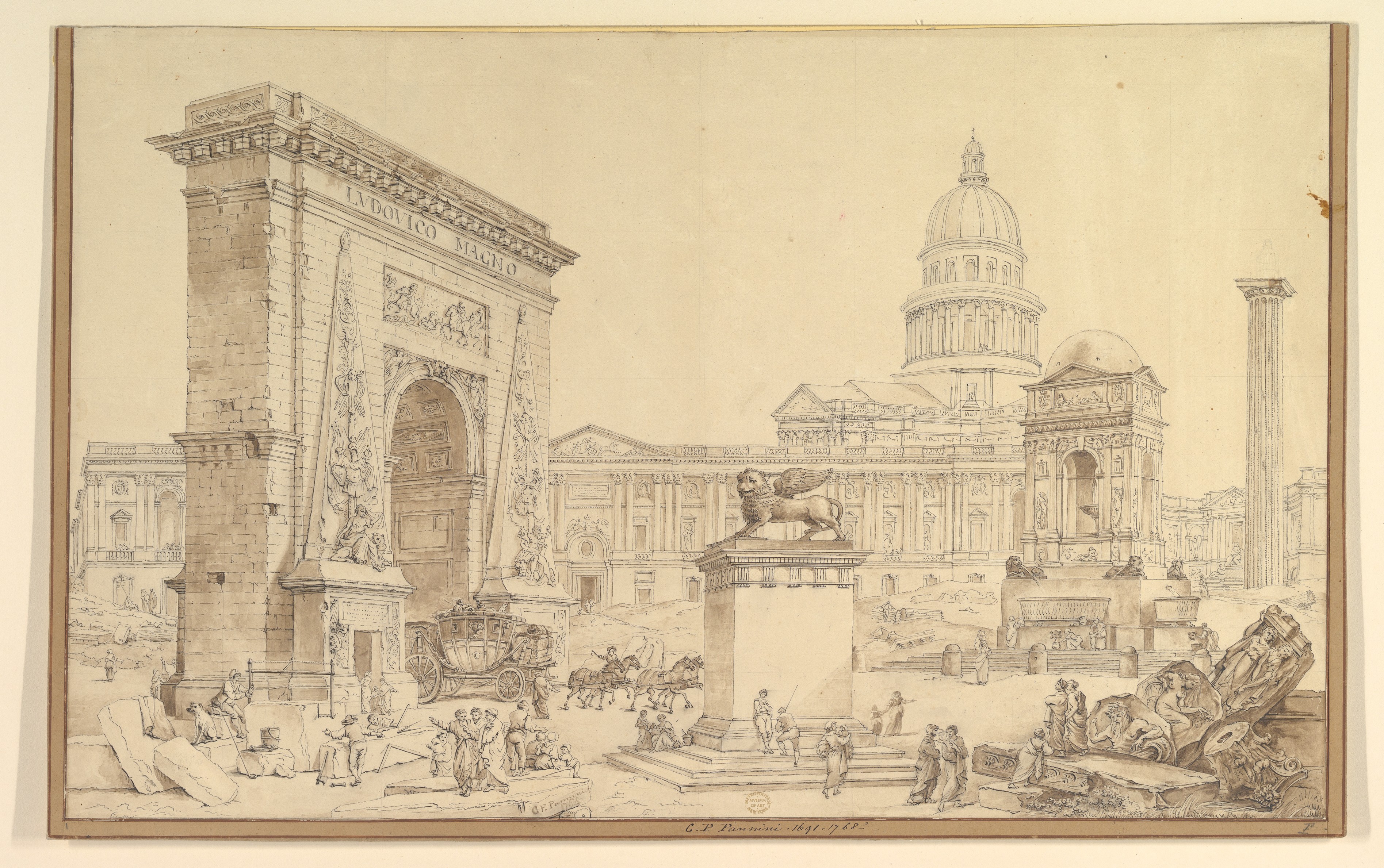 "Пантеон (французский: [ pɑ̃.te.ɔ̃] ⓘ , отдревнегреческого πάνθειον(pántheion) '[храм] всем богам') — памятник в 5-м округе Парижа, Франция. Он стоит в Латинском квартале(Quartier Latin), на горе Сент-Женевьев , в центре площади Пантеон, которая была названа в его честь. Здание было построено между 1758 и 1790 годами по проекту Жака-Жермена Суффло по приказу короля Людовика XV; король задумал его как церковь, посвященнуюСвятой Женевьеве, покровительнице Парижа, чьи мощи должны были быть размещены в церкви. Ни Суффло, ни Людовик XV не дожили до завершения строительства церкви."