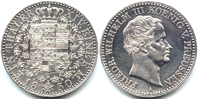 Прусский талер 1830 г. с портретом короля Фридриха Вильгельма III.