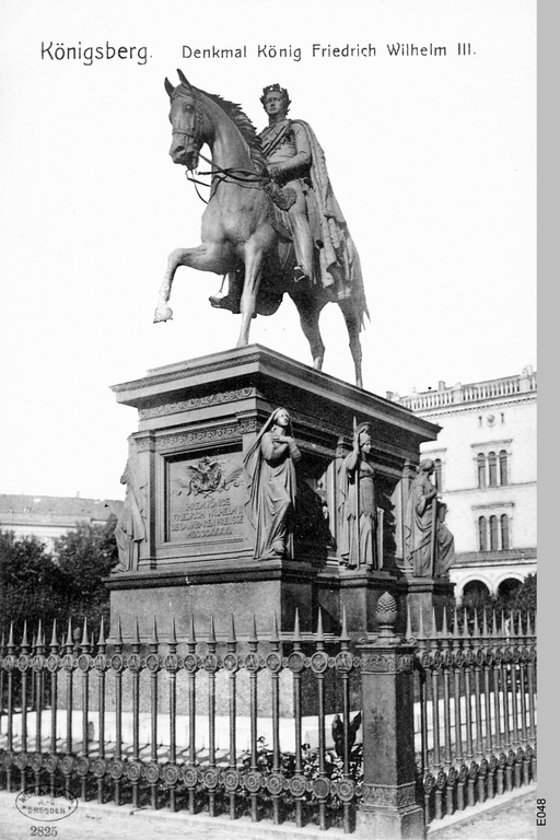 Конный памятник Фридриху Вильгельму III перед новым зданием Кёнигсбергского университета, 1851, переплавлен в 1950-х годах.
