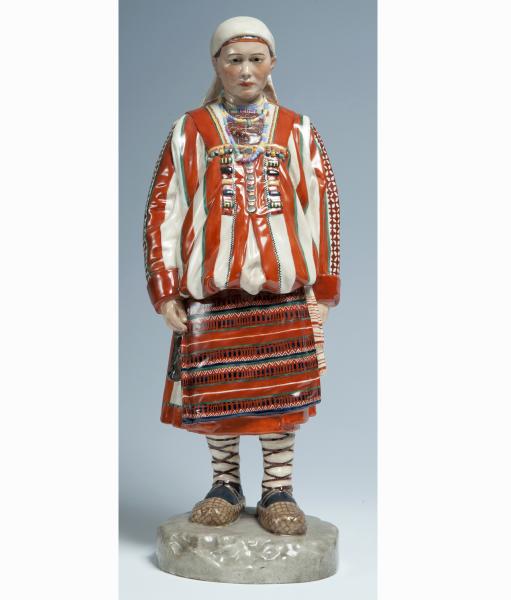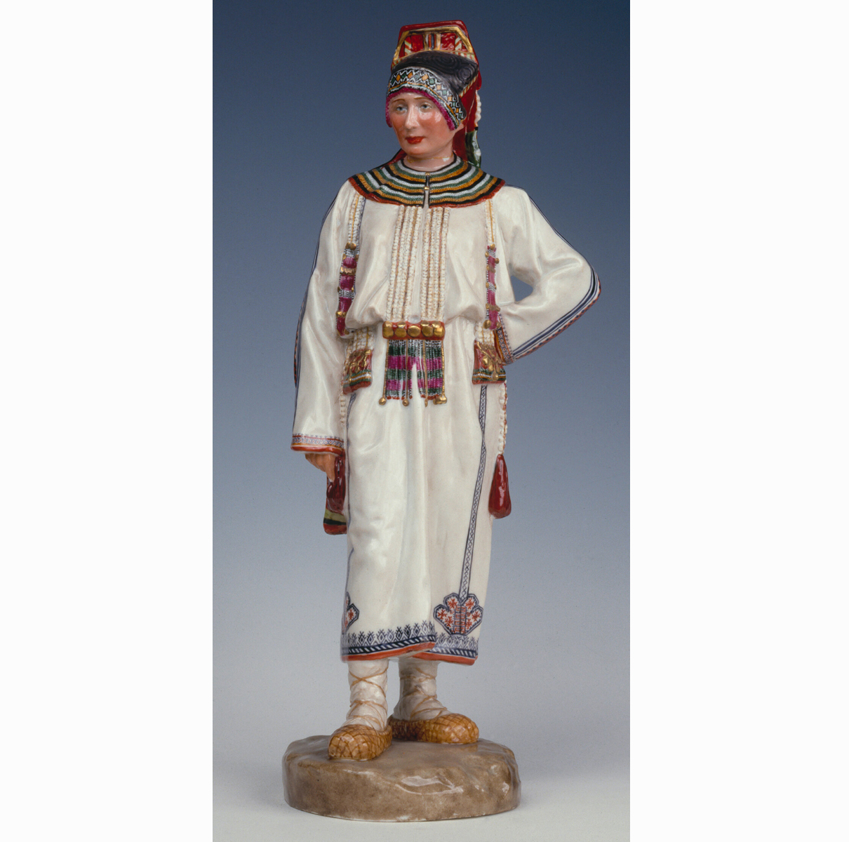 "Как известно, выпуском фарфоровых "кукол" завод занимался на протяжении всей своей деятельности. Гарднеровские скульпторы начинали с копирования моделей немецких заводов. В круг жанровых росписей входили романтизированные сцены из жизни русских крестьян, а также типажные изображения представителей народов разных стран. Пропорции фигурок, как правило, подчинены эстетике высокого классицизма: они более вытянутые и стройные, чем их графические прототипы. Уже в то время фарфоровые фигурки стали предметом коллекционирования. Ими украшали интерьеры столовых, гостиных, кабинетов и будуаров. Часто из фарфоровых фигурок устраивали целый движущийся театр, заключённый в специальные зеркальные ящички внутри старинных французских шкафов. Изящно вылепленные, нарядно раскрашенные и занимательные по сюжетам, они были очень популярны."