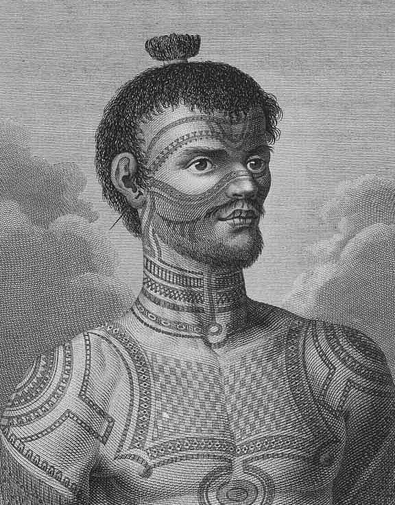 Татуированный воин с Нуку-Хивы. Гравюра по рисунку Тилезиуса.