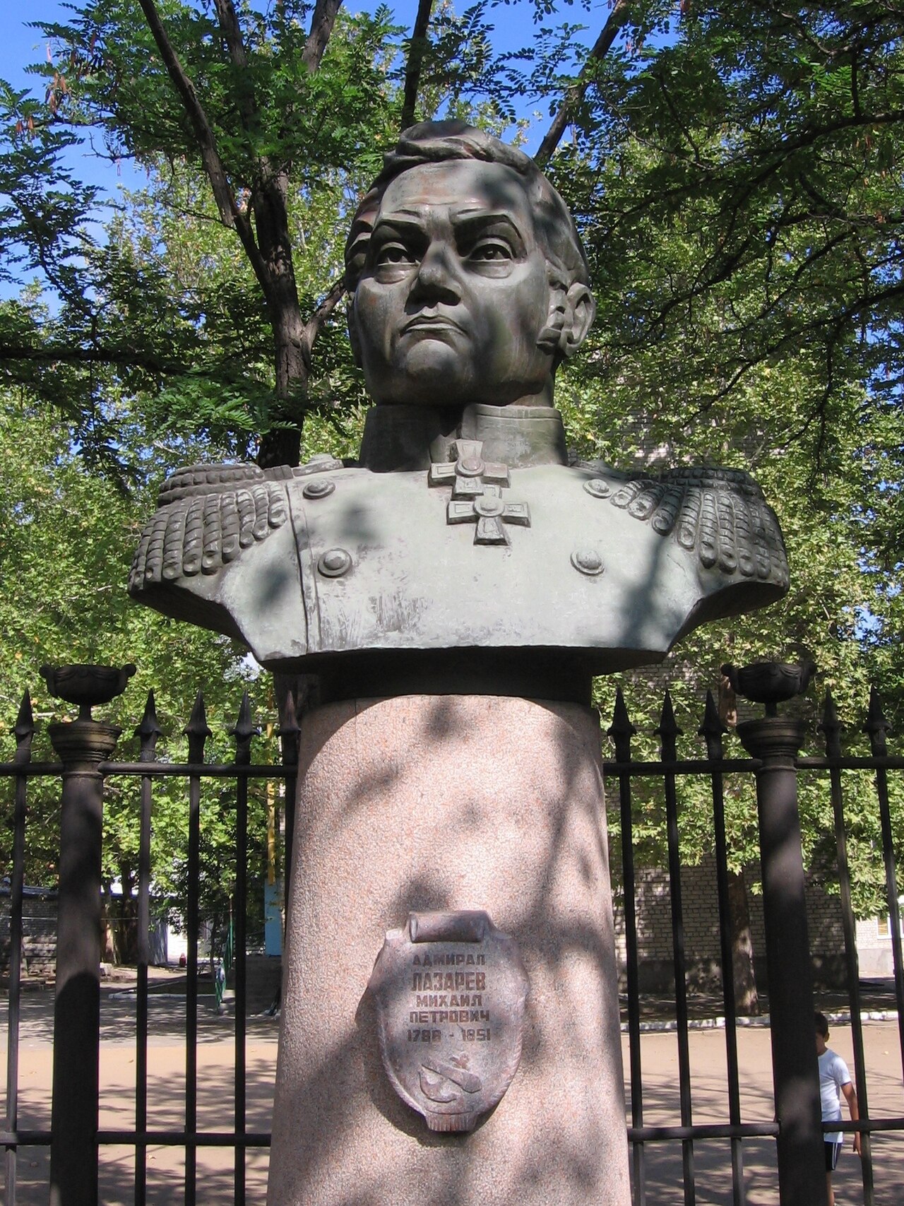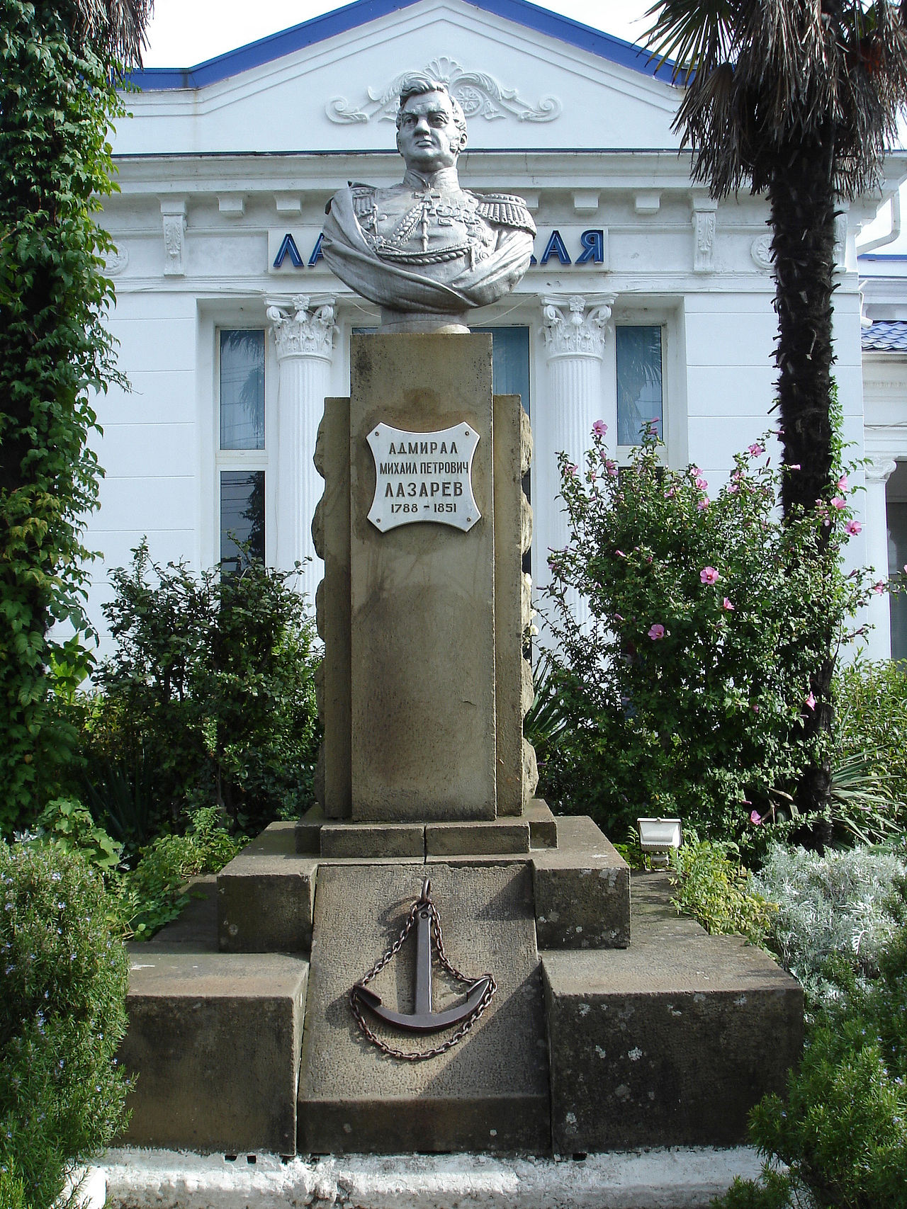 "Михаи́л Петро́вич Ла́зарев (3 [14] ноября 1788 год, Владимир — 11 [23] апреля 1851 год, Вена, похоронен в Севастополе) — русский флотоводец и мореплаватель, адмирал (1843), кавалер орденов Святого апостола Андрея Первозванного (1850) и Святого Георгия IV класса за выслугу лет (1817), командующий Черноморским флотом и один из первооткрывателей Антарктиды. Один из основателей Новороссийска (1838).