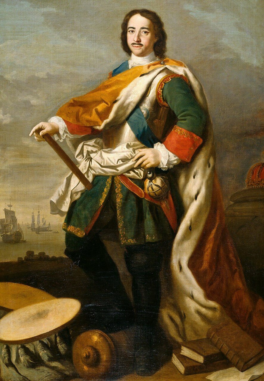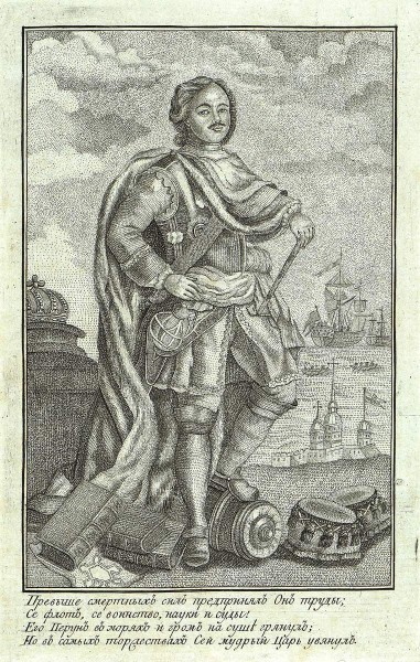 Петр I (Великий; 1672–1725) — младший сын царя Алексея Михайловича. С 1682 года — царь (до 1696 года совместно с братом Иоанном V). С 1721 года — первый император всероссийский. Проводимая им внешняя и внутренняя политика имела целью интеграцию России в международную европейскую систему. При Петре I реформированию подверглись все сферы общественной жизни: государственное управление, церковь, армия, образование, бытовая культура. Основал российский флот, вел войны с Турцией за выход к Черному морю и со Швецией — к Балтийскому, чтобы обеспечить России водный путь в Западную Европу. Петр I. Время и окружение. СПб, 2015. С. 33.