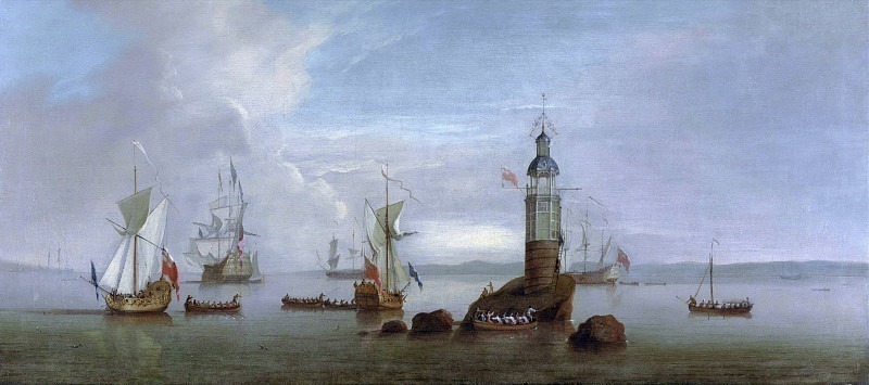 Далее, в этой теме мы продолжали обсуждение обеих этих картин, и был сделан вывод, что на картине Луи Каравака изображены русские корабли (красный флаг с красным крестом), голландские корабли (Русский флаг), английские корабли (косой синий крест), датские корабли (прямой белый крест).