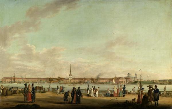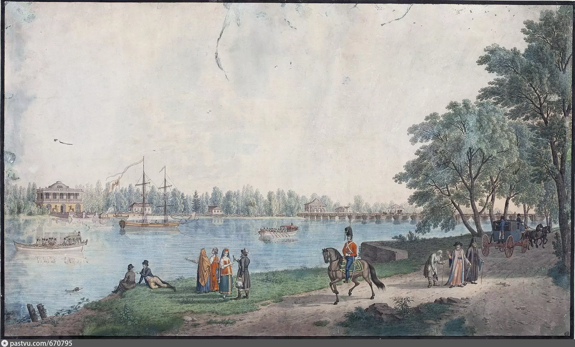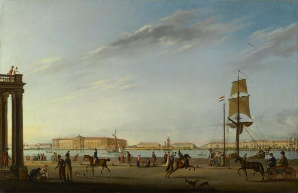 Эпоха Александра I (1801-1825) | россика | дети | аристократы | воины, военные | головные уборы | мужской костюм | военная одежда | женский костюм | народный костюм | светский костюм | лодки, парусники, корабли | Санкт-Петербург – Петроград – Ленинград | городской пейзаж | дворцы | день | лошади | собаки | облака.