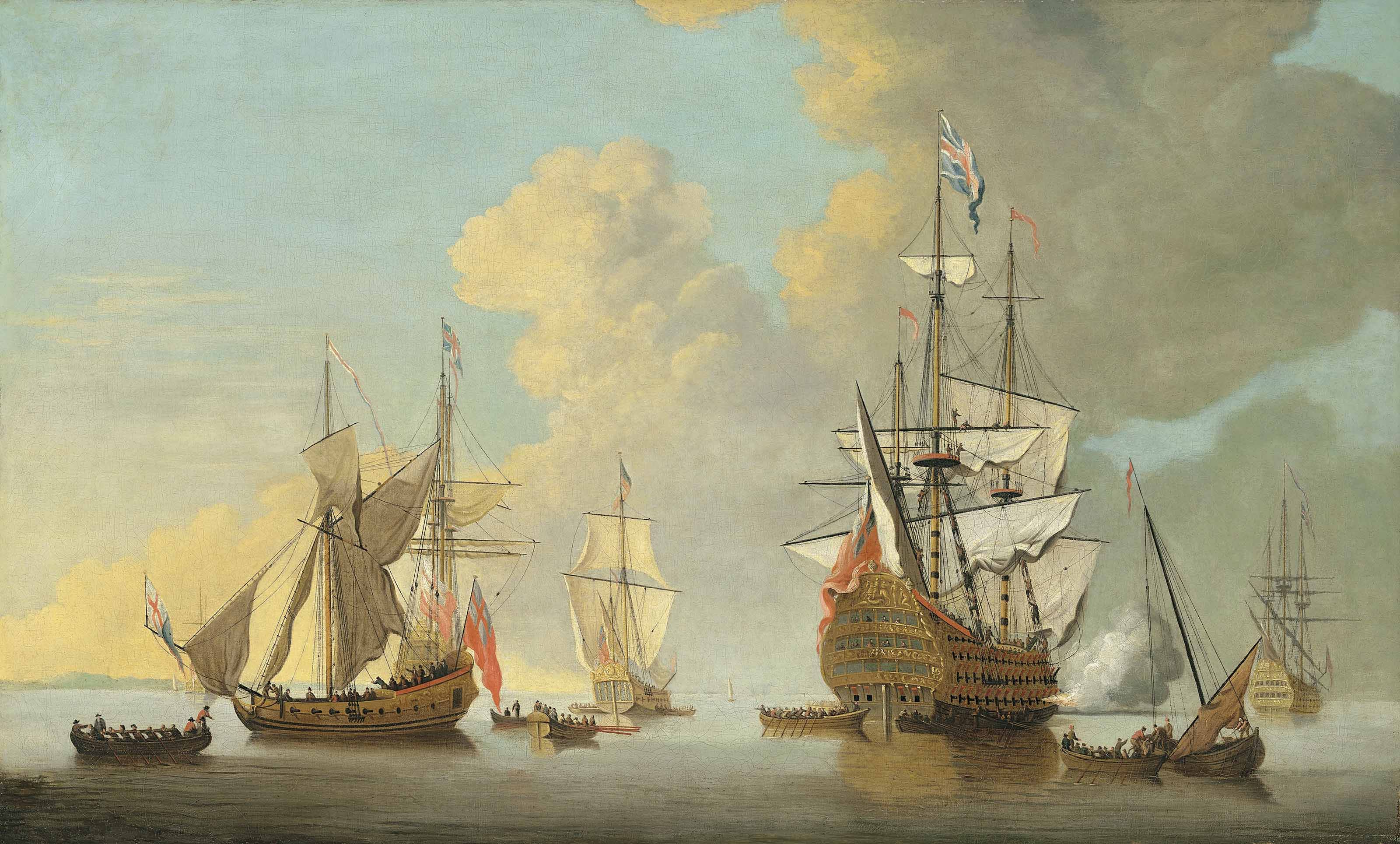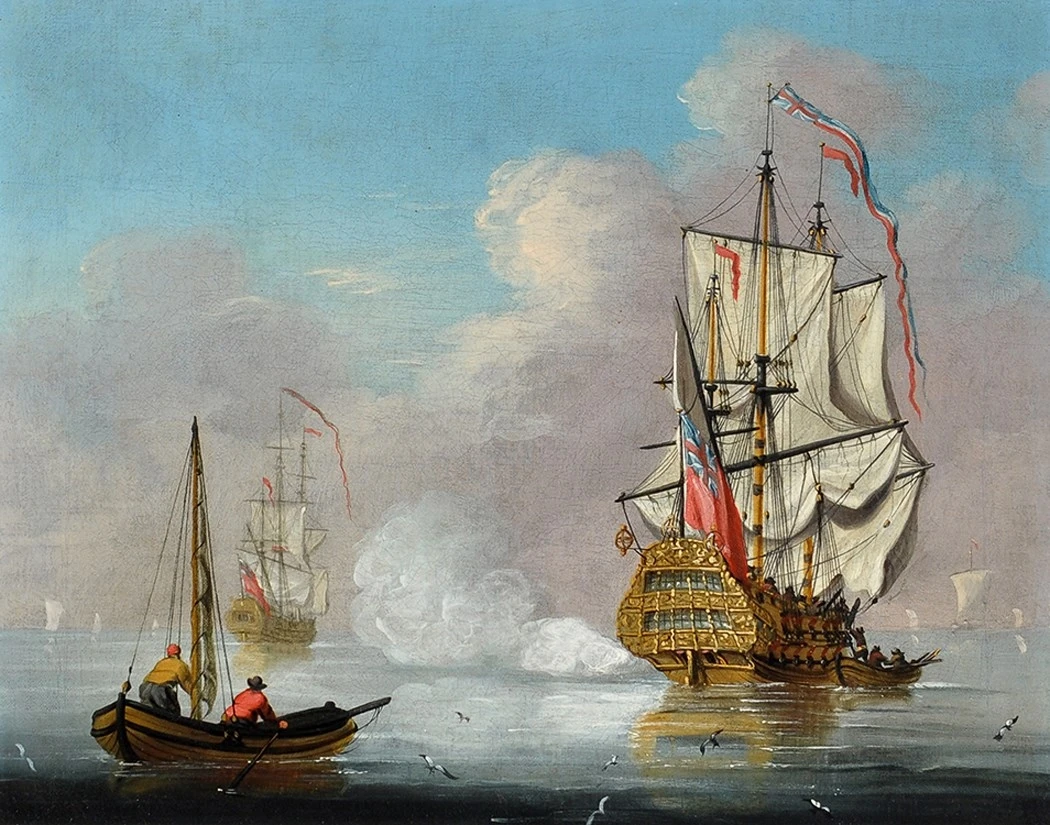 "Британский военный корабль отдаёт салют". Петер Монами.
