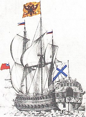 Я считаю, что на этой картине изображен русский корабль, а не британский, и что Петер Монами рисовал корабли Российской империи.