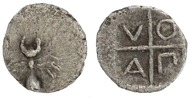 Пантикапей — 500 г. до н. э. Серебро. Муравей и засеянное поле.