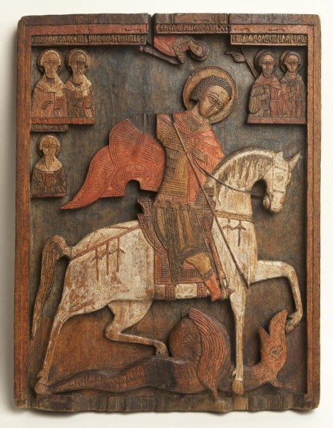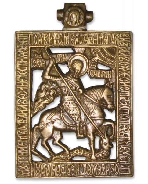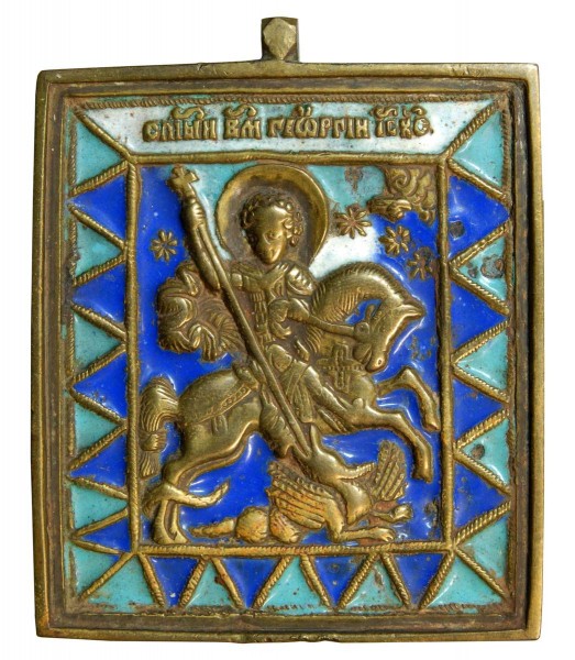 Христианский мученик Георгий, казненный во время гонений на христиан при императоре Диоклетиане (правил с 284 по 305), был одним из самых почитаемых на Руси святых. Изображение Георгия, поражающего дракона, стало эмблемой Москвы, а затем и Русского государства со времени первого великого князя московского Юрия Даниловича. Изображения Георгия-змееборца получили распространение на Руси с самого раннего времени. Подробнее о Святом Георгии>>>