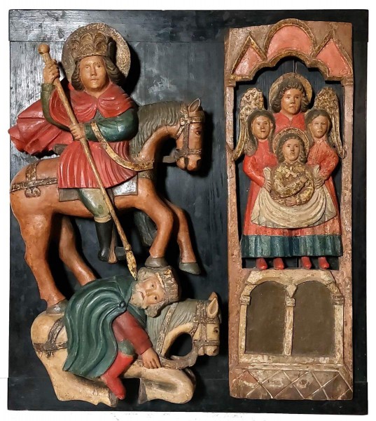 Дерево, резьба, темперная роспись, золочение. 71 × 43 × 10,5