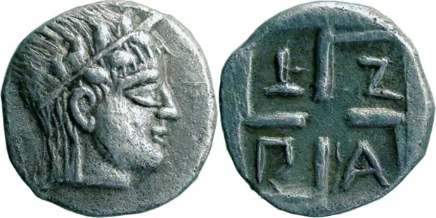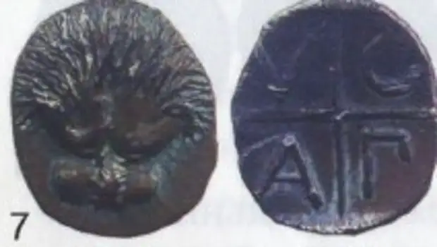 "Другой интересный и достаточно спорный факт ранней чеканке Боспора — это выпуски монет с легендой АПОЛ (рис.7).
