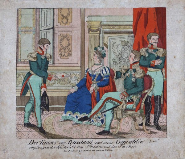 Интересно, почему решили, что это 1814-й год? Я подумал, что это вторая половина 1820-х или начало 1830-х, когда увидел эту картину, потому что император изображенный на ней очень похож на Михаила Павловича.