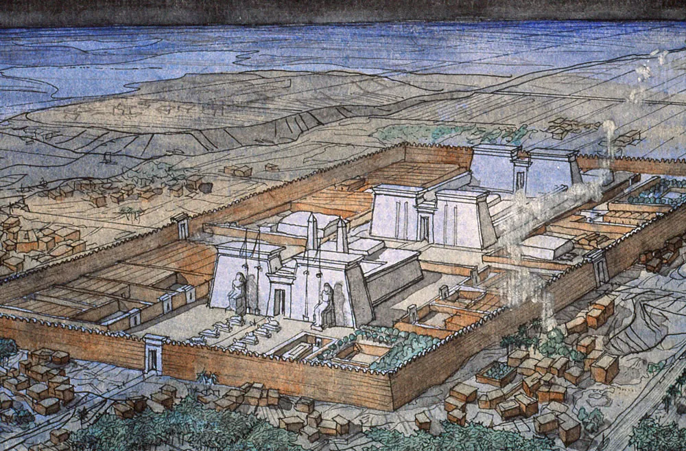 "Геродот (ок. 484-425 гг. до н.э.) отмечал, что ее огромный храм в Саисе был одним из самых впечатляющих во всем Египте:"