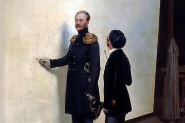 Богдан Виллевальде. "Царь и художник. Николай I в мастерской художника." Фрагмент картины, 1883. Фото: ГТГ.