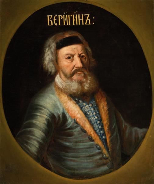 "Веригин Федор Иванович (годы жизни неизвестны). C 1658 – стольник царя Алексея Михайловича, до 1692 – Петра I. Один из участников «Всепьянейшего сумасброднейшего собора всешутейшего князь-папы». Его дочь Мария была замужем за В. С. Долгоруким, внук женат на А. В. Шереметевой. Петр I. Время и окружение. СПб, 2015. С. 124.