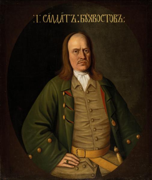 Портрет «первого российского солдата» Сергея Леонтьевича Бухвостова не был упомянут в описи Преображенского дворца 1735 года, но он обнаруживает безусловное стилистическое сходство с восемью основными изображениями серии.