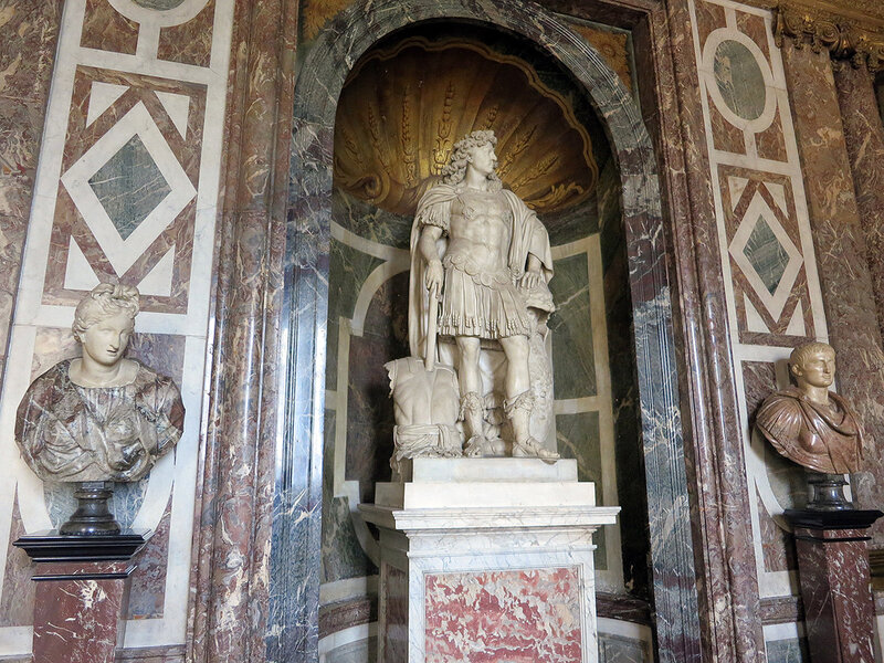 "Когда дворец был построен, Людовик XIV распорядился, чтобы в Версальский дворец для осмотра его красот беспрепятственно и бесплатно мог зайти человек любого звания и сословия, а также любого имущественного статуса. Единственным условием было наличие у посетителя шляпы и шпаги. Тем, у кого их не было, давали эти атрибуты здесь же напрокат."