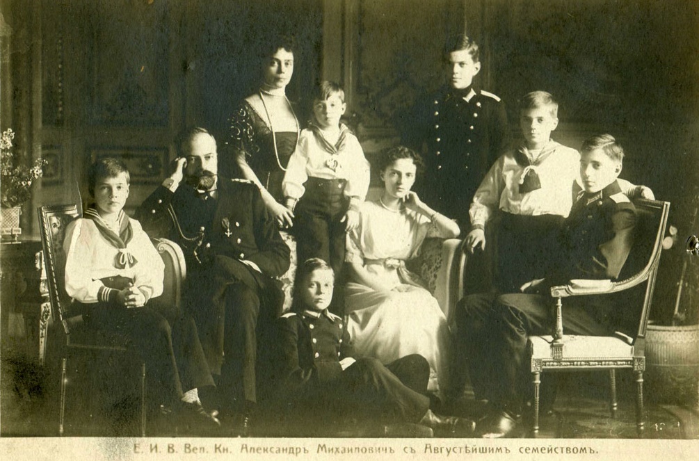 "Великий князь Алекса́ндр Миха́йлович (Сандро́; 1 [13] апреля 1866, Тифлис — 26 февраля 1933, Рокебрюн) — российский государственный и военный деятель, четвёртый сын великого князя Михаила Николаевича и Ольги Фёдоровны, внук Николая I."