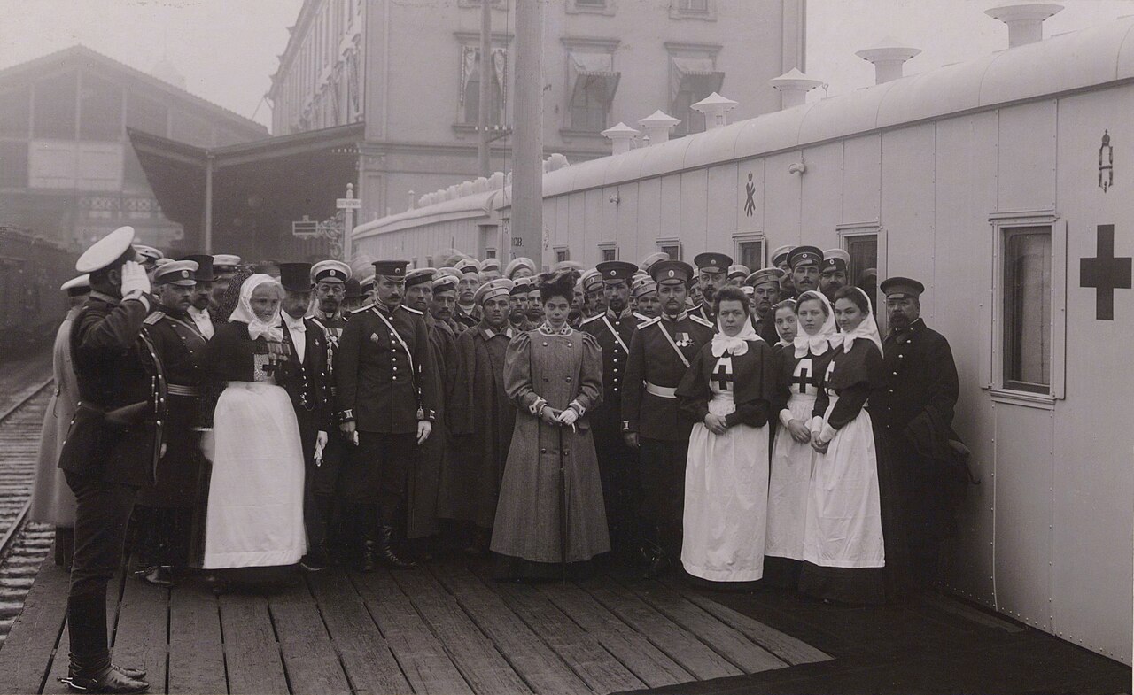 Ксения Александровна с командой своего военно-санитарного поезда, отбывшего на Дальний Восток, 16 (29) августа 1905 года.