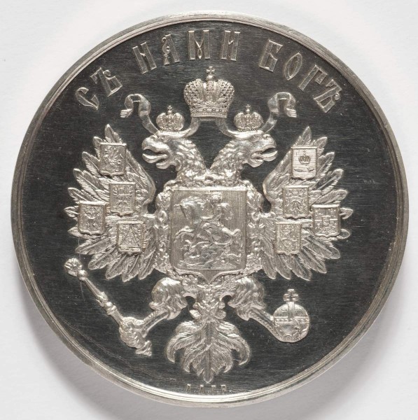 На медали изображены: Петр Великий, Павел I, Мария I, Александр II и Александр III.