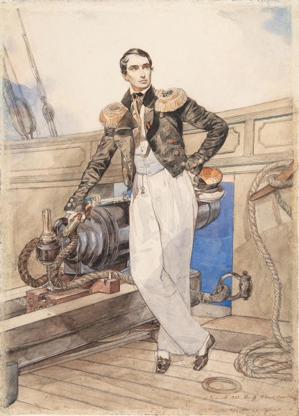 На этой картине можно видеть двух гвардейских кирасир(ов) в касках, сапогах и парадной форме, созданной при императоре Михаиле II (Михаиле Павловиче, сыне императора Павла I).